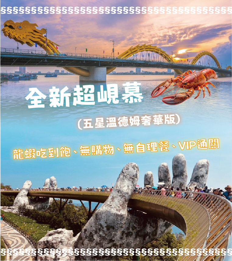 遇見峴港~全新超峴慕(五星溫德姆奢華版) 龍蝦吃到飽六日VJ