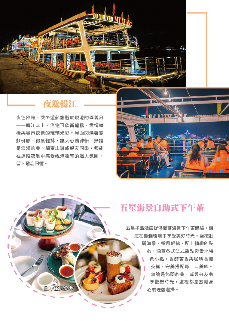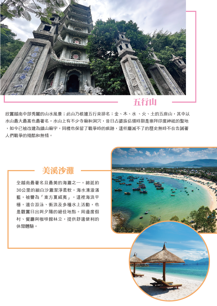 五行山(含電梯上)-漫步美溪沙灘-IG熱門打卡點-峴港遊船夜遊韓江之旅(每人飲料一杯+法式麵包)
