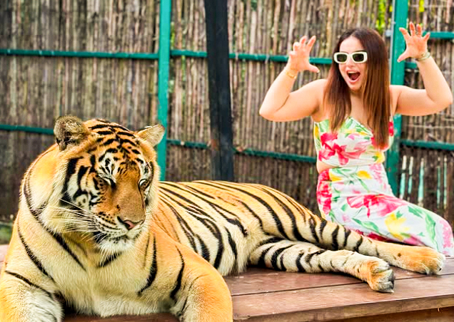 ▍虎哩拍照 · 勇氣大挑戰在普吉島老虎王國近距離接觸雄偉的老虎,一次難忘的野生動物邂逅,受驚險刺激、無憂無慮的遊覽,在安全區域與老虎進行一對一互動,從幼虎到成年老虎與老虎和可愛的獵豹見面並合影。