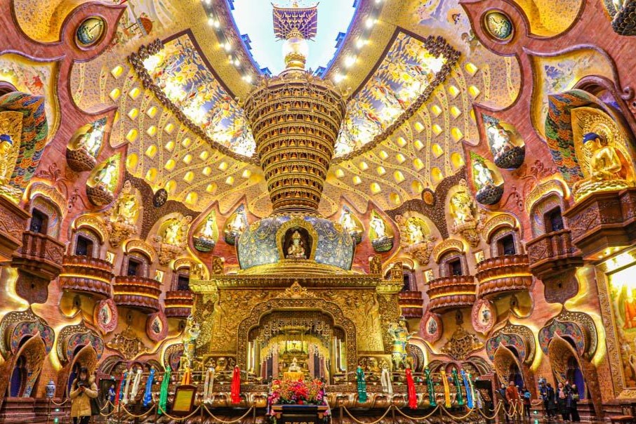 【牛首山·佛頂宮】(含電瓶車)【佛頂宮】,斥資40 億打造的精美宮殿供奉佛教界至高聖物——釋迦牟尼佛頂骨舍利,外部分為大穹頂和小穹頂兩個部分,大穹頂形如佛祖袈裟覆蓋在小穹頂之上,象徵著佛祖的無量加持;小穹頂下部為蓮花寶座造型,上部為摩尼寶珠造型,上下結合形成“蓮花托珍寶”的神聖意象。觀7.5 米臥佛,採用不銹鋼鑄造,表皮仿以漢白玉材質,臥佛還能360 度緩慢地旋轉。觀【佛頂塔】,是佛頂聖境的標誌性建築之一,塔內供奉一尊毗盧遮那佛坐像,置有一口仿唐式全銅鑄金剛鐘,還有各種經藏展示。