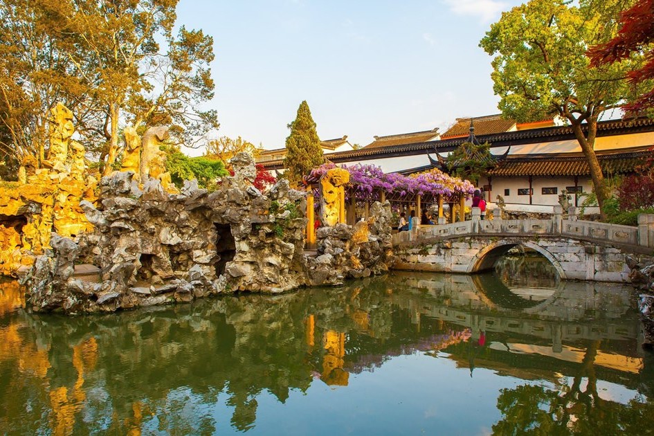 【獅子林】其擁有國內尚存最大的古代假山群。湖石假山玲瓏眾多、出神入化,形似獅子起舞,被譽為“假山王國”,有“桃源十八景”之美譽。園中最高峰為“獅子峰”,另有“含暉”、“吐月”等名峰,建筑有“立雪堂”、“臥云室”、“指柏軒”、“問梅閣”等。