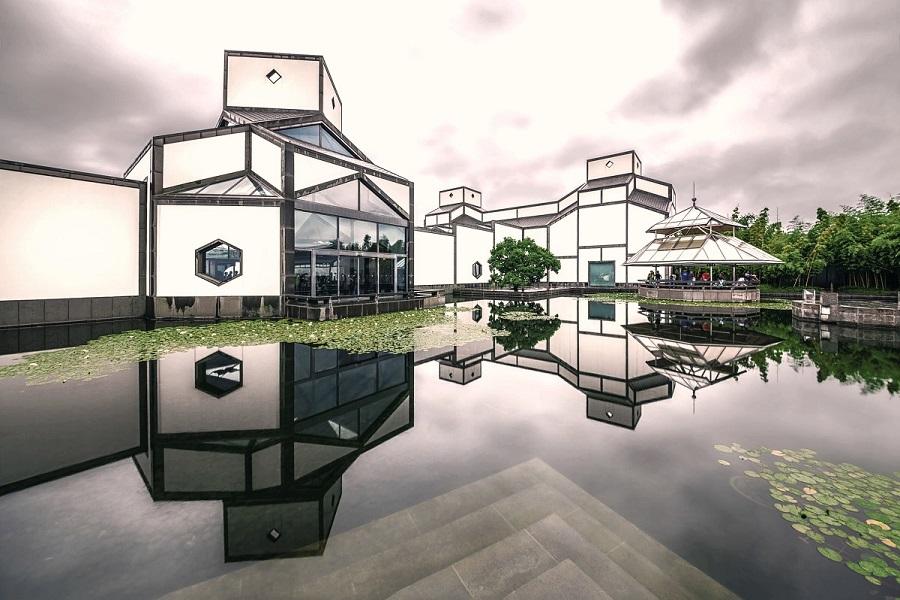 【蘇州博物館】新館建築群在現代幾何造型中體現了錯落有致的江南特色,為一座集現代化館舍建前築、古建築與創新山水園林 三位一體的綜合性博物館。